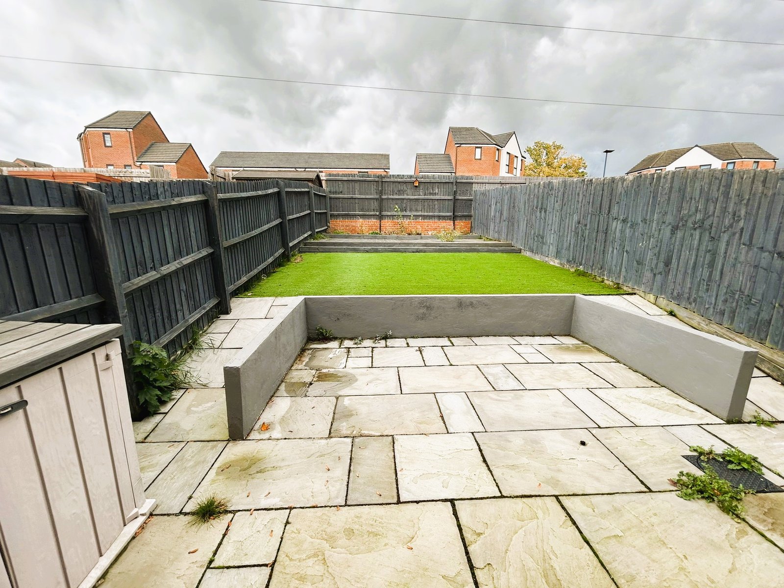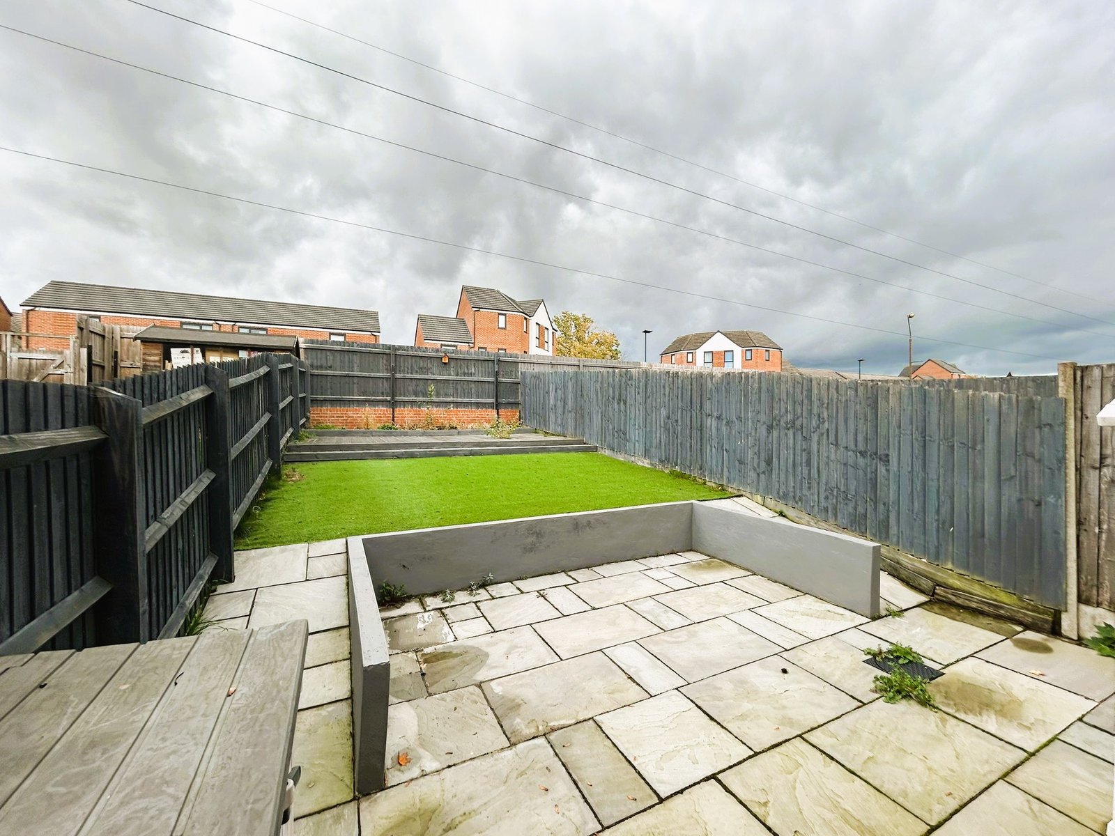 The property enjoys a private front garden with a driveway providing off-street parking. The rear garden offers a low-maintenance retreat, with a paved patio area ideal for outdoor dining and a raised lawn with artificial grass for year-round greenery.
